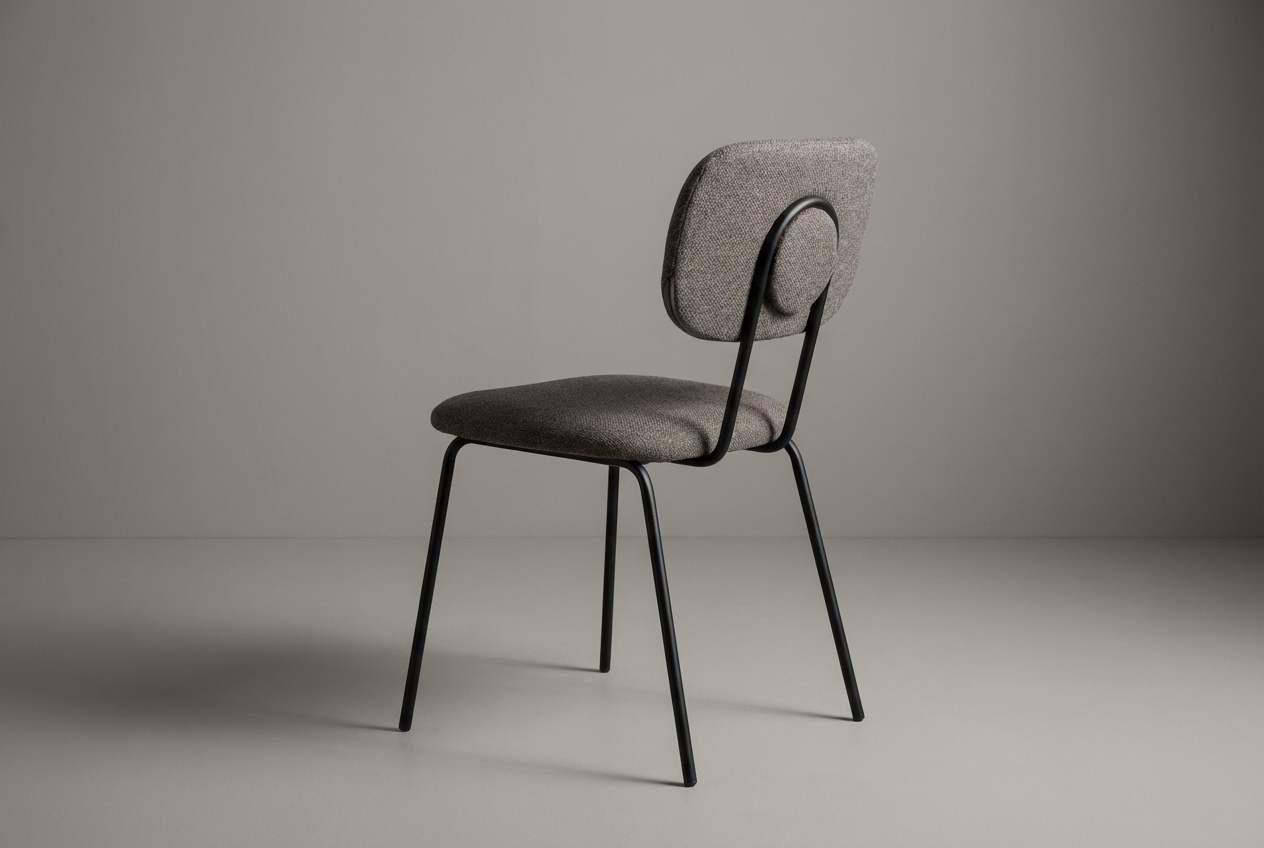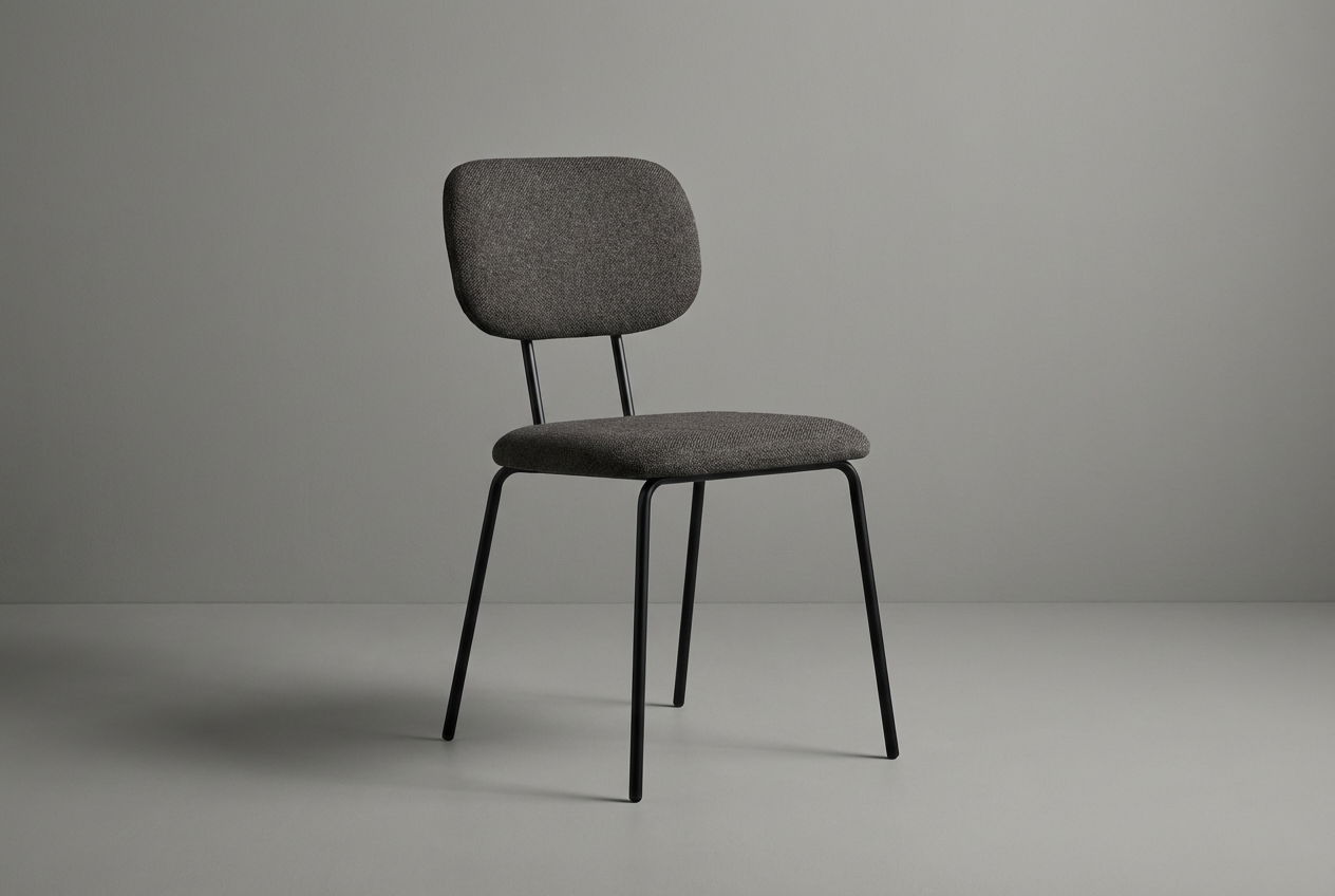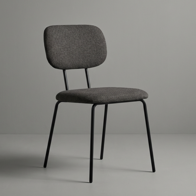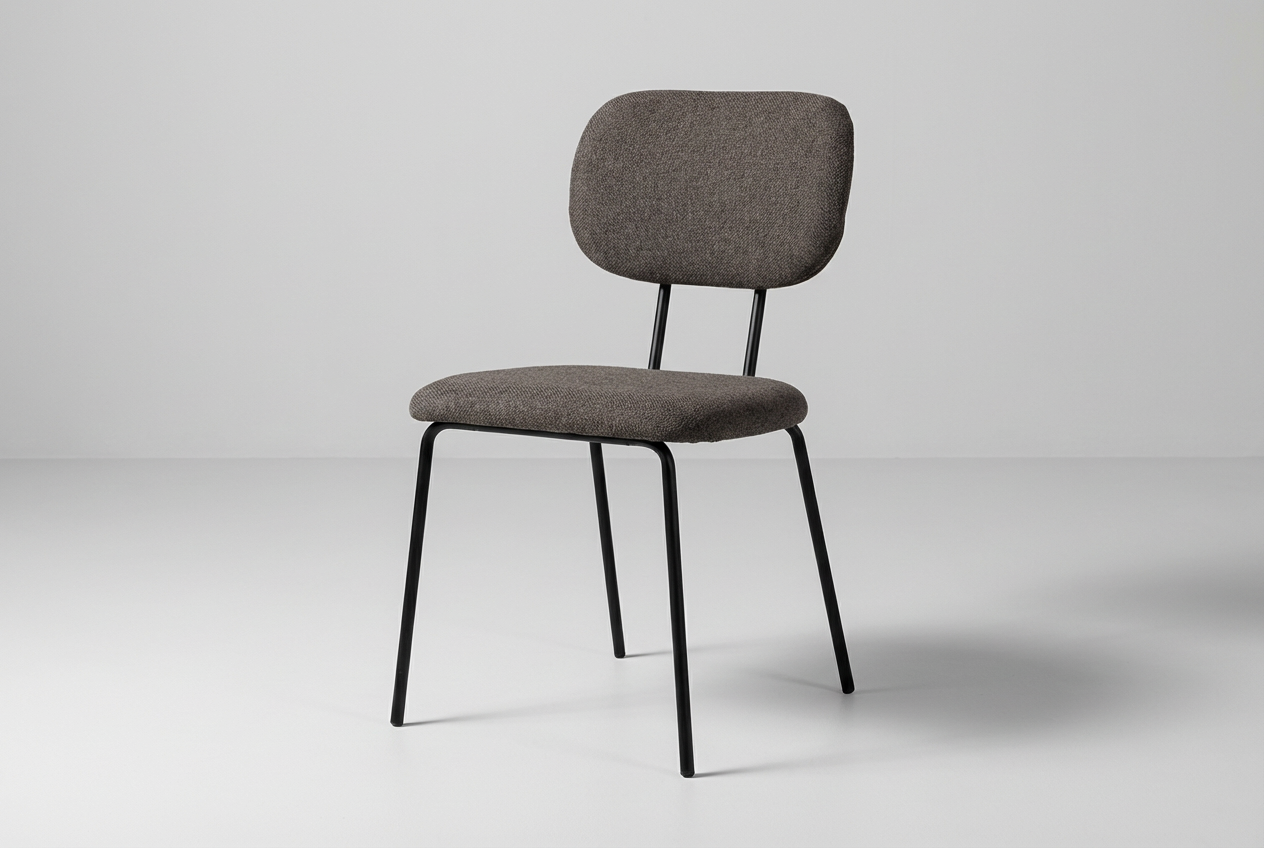 En enkel og funksjonell stol med polstret sete og rygg for god sittekomfort. Stolen har et slitesterkt tekstiltrekk i nøytral gråbrun farge og et robust, sortlakkert stålunderstell. Passer godt til kantiner, møterom og konferansesaler.