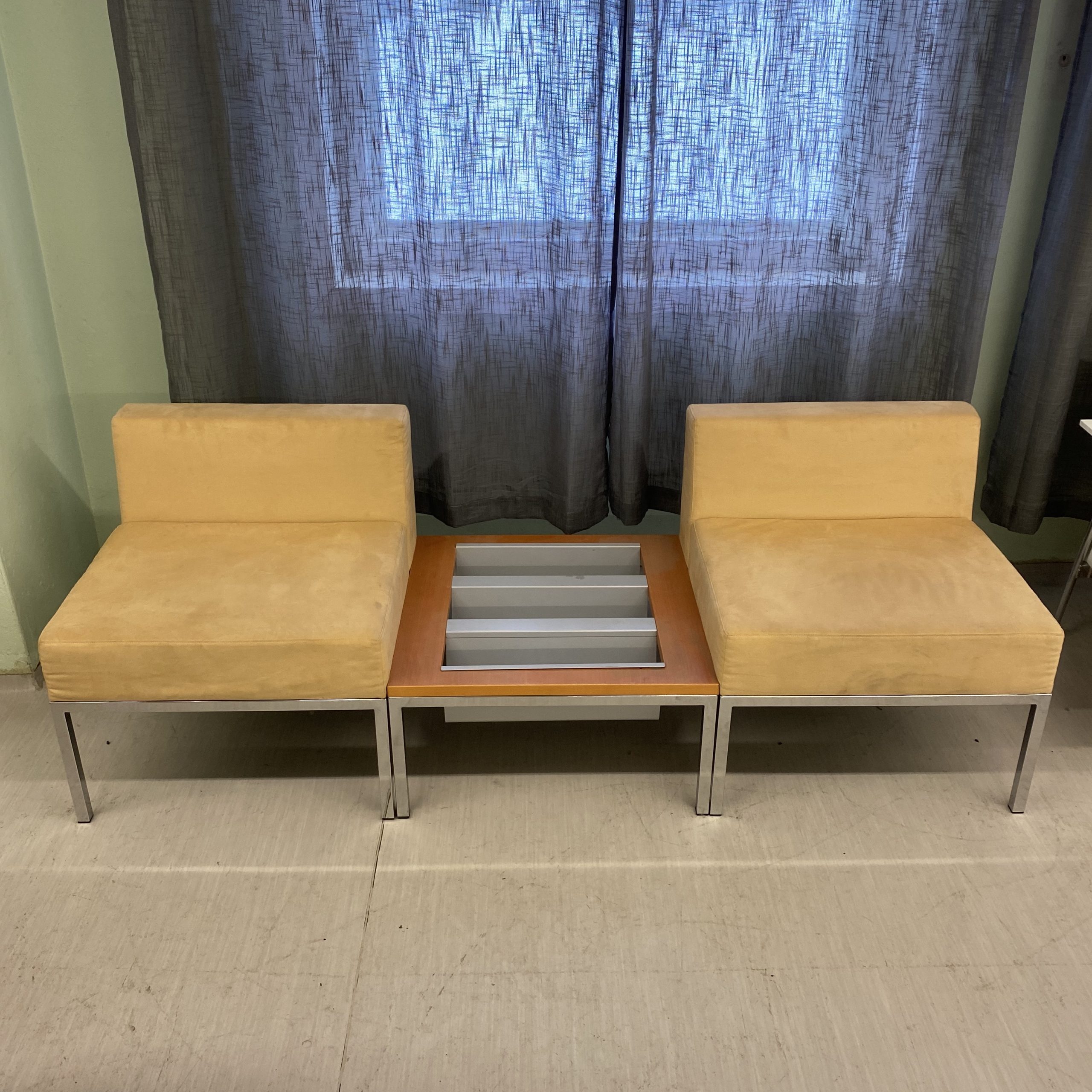 Pent brukt sofa til venterom. Kan settes som på bildet eller som en 2-seter sofa med bordet på den ene siden.