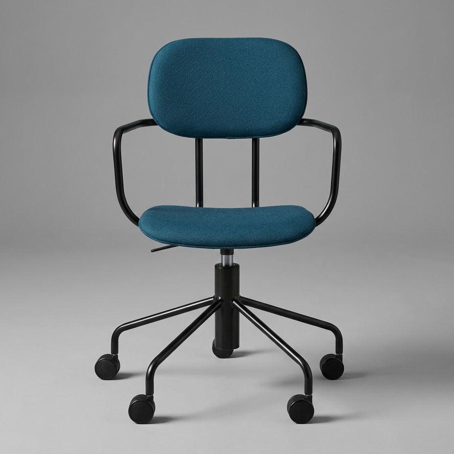 Stolen leveres med ramme i 7 ulike farger, og kan bestilles med sete og rygg i finér eller trukket i stoff.