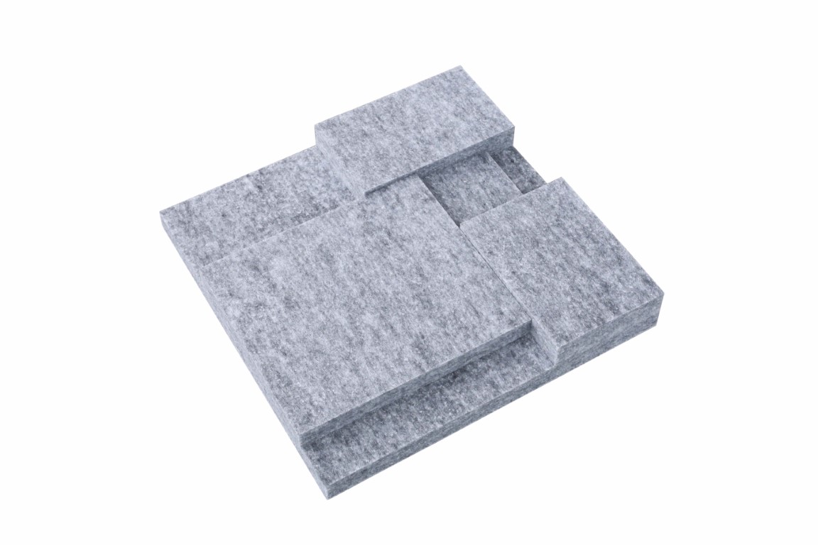 Nivå er en veggabsorbent som forbedrer akustikken og bidrar til en visuell effekt med sitt særskilte formspråk. Panelene kan varieres for å skape et mønster i ulike farger, med eller uten stoff. Kan også fås som veggabsorbent.