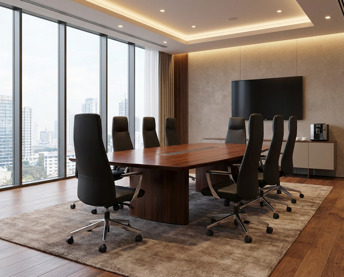 Nozo er en komfortabel, stilig og prisgunstig konferansestol trukket i skinn.