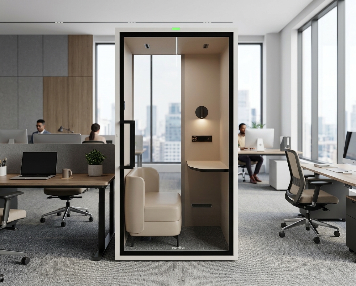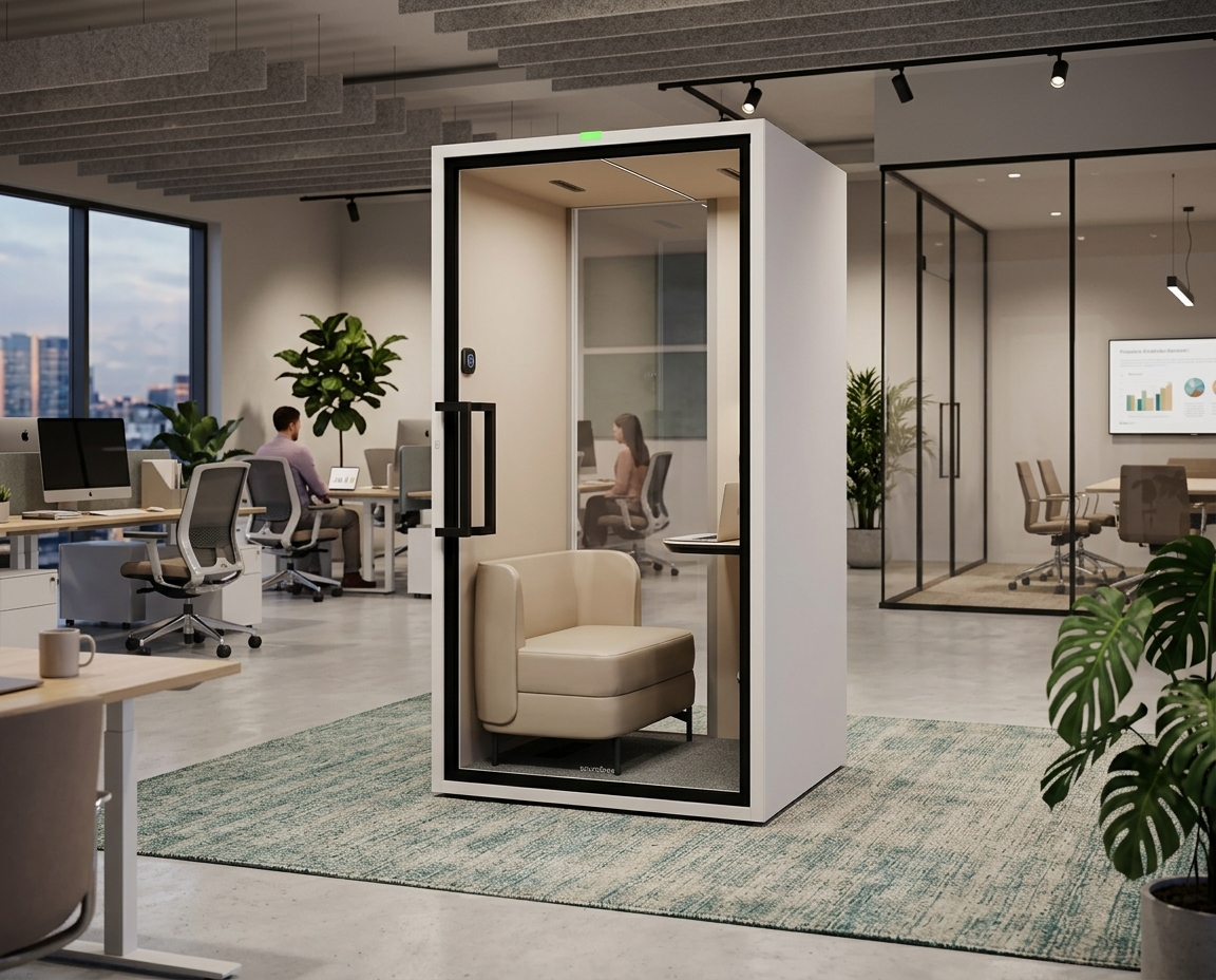 D-Pod Art SM er et prisgunstig og stilrent lyddempet stillerom som skaper en rolig arbeidsplass i åpne kontormiljøer. Perfekt for telefonsamtaler, videomøter eller fokuserte arbeidsøkter uten forstyrrelser.