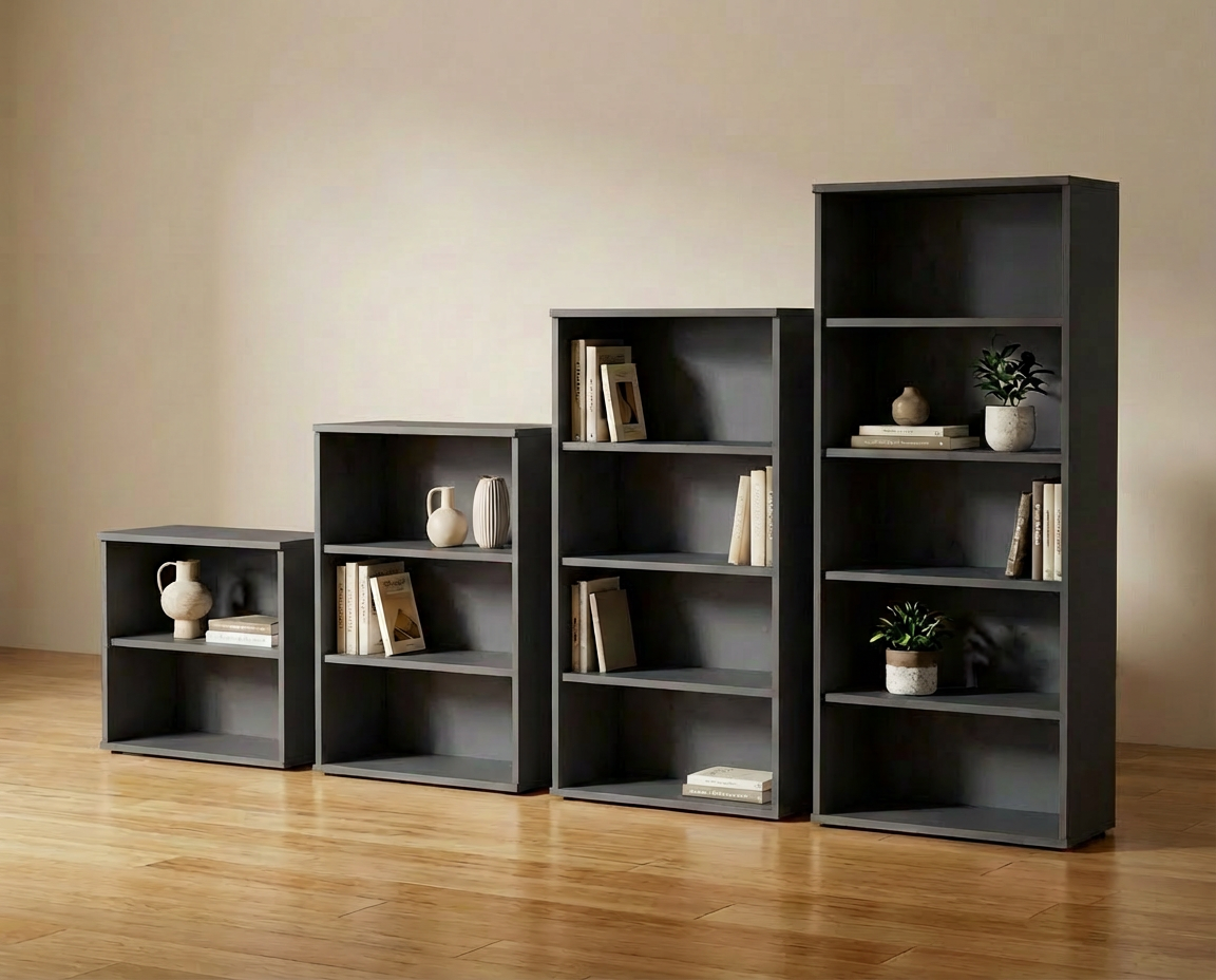 UNI skap og reoler leveres i standard bredde på 80 cm og i flere ulike høyder. Produktene leveres som standard med justerbare plastføtter.